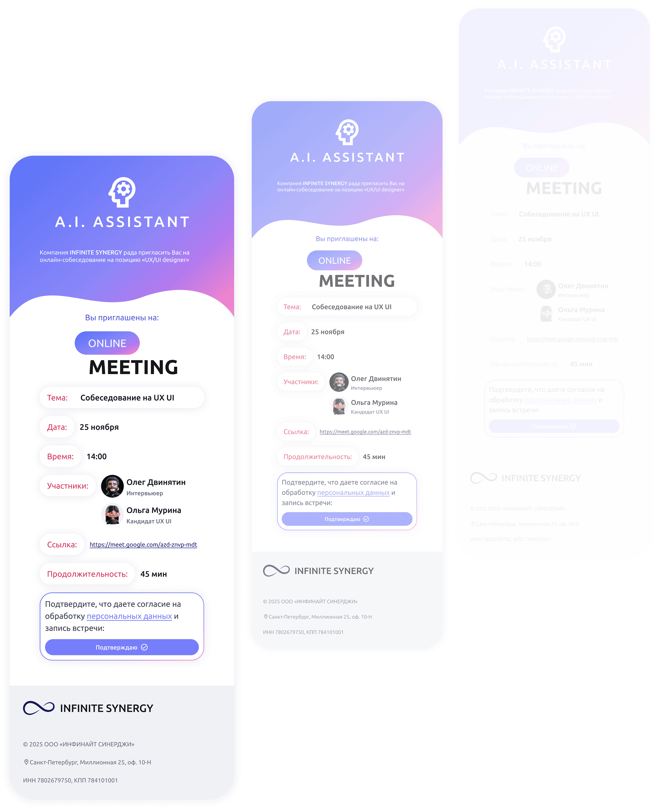 Письмо-приглашение автоматически отправляется на почту кандидата, что упрощает коммуникацию